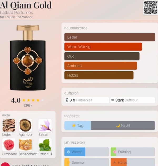 AAl Qiam Gold von Lattafa 100ml – Eau De Parfum Luxury Arabian Perfume – Unisex