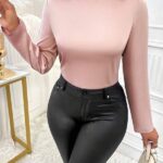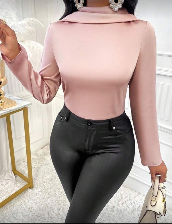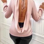 Blouse en satin élégante avec col drapé et dos nu Robe vintage élégante, collier, manches longues, tissu uni, haut orné, non élastique