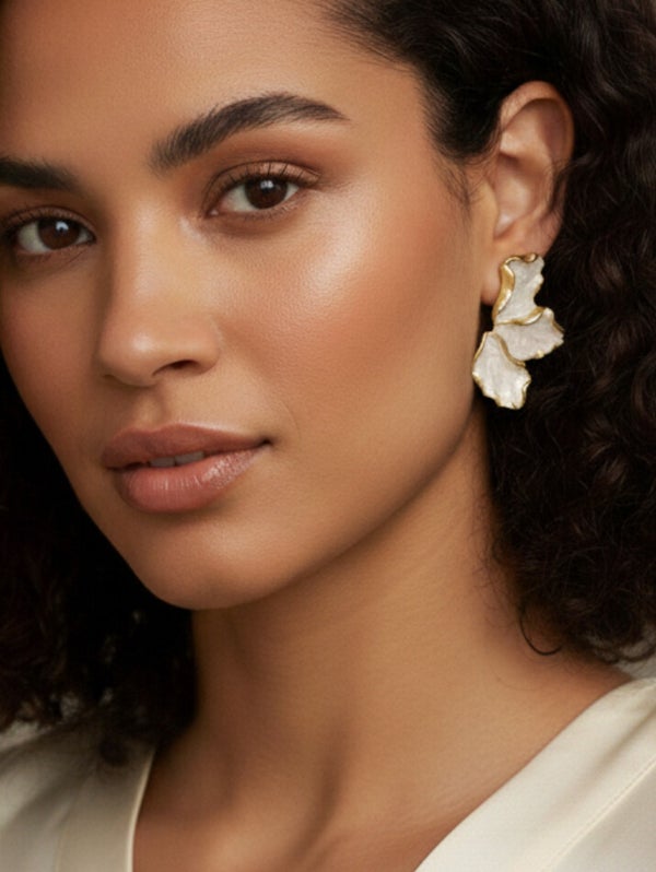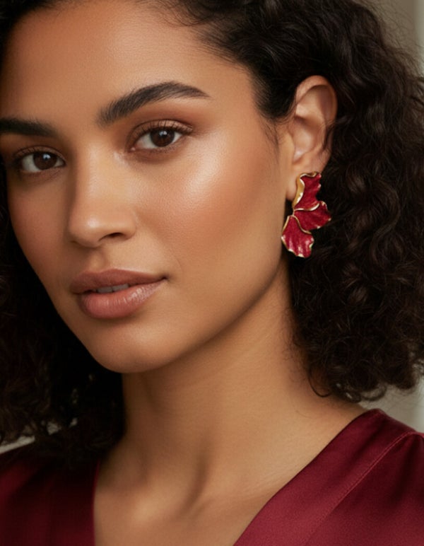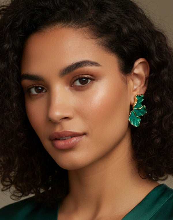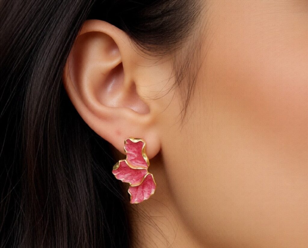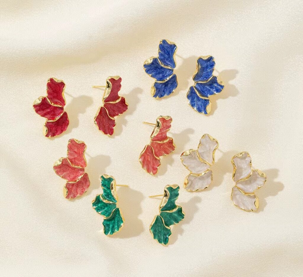 Boucles d’OreillesClous Pétales Colorées Multicouches Feuille pour Femme,