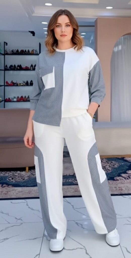 Confortable, original et élégant, cet ensemble est parfait pour les femmes audacieuses qui veulent allier aisance et modernité