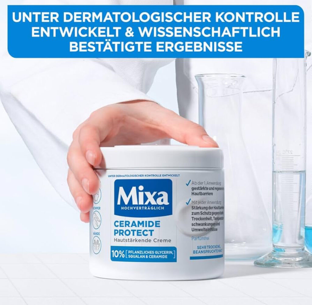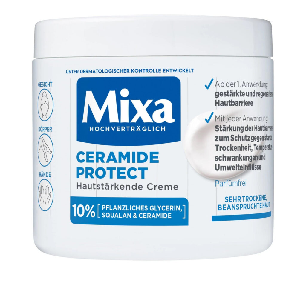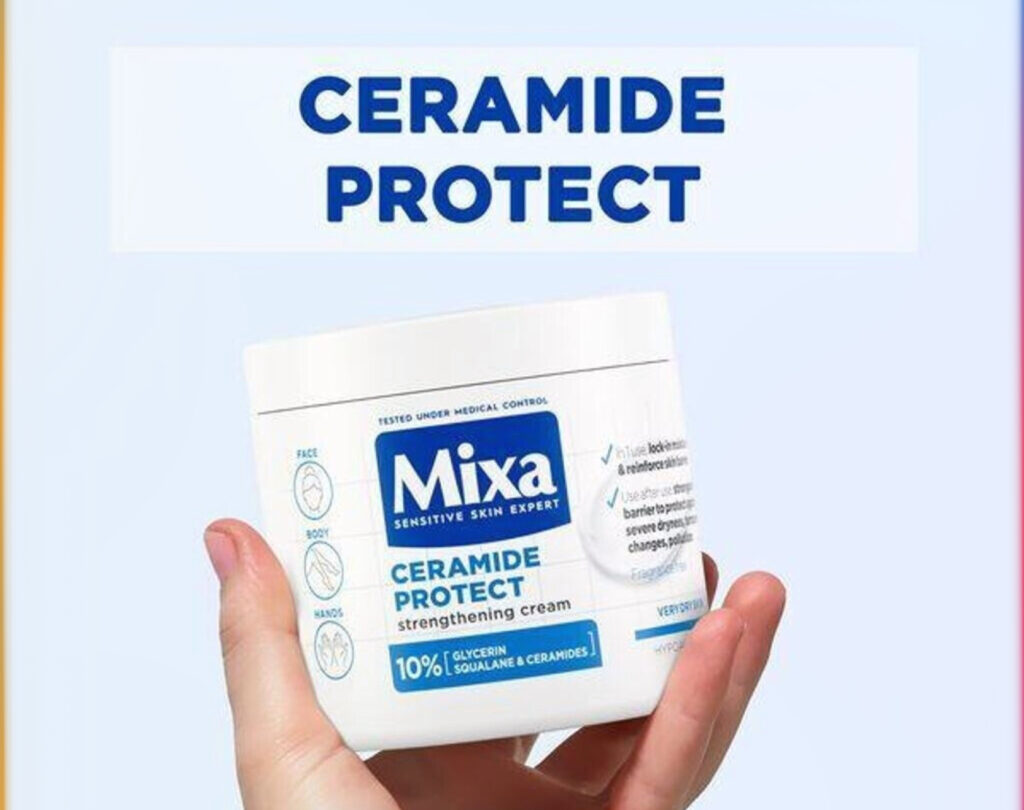 Il s’agit de la crème hydratante Mixa Ceramide Protect, conçue pour renforcer la barrière cutanée des peaux très sèches et sensibles.