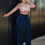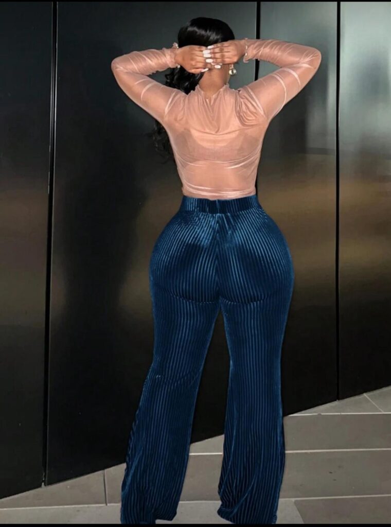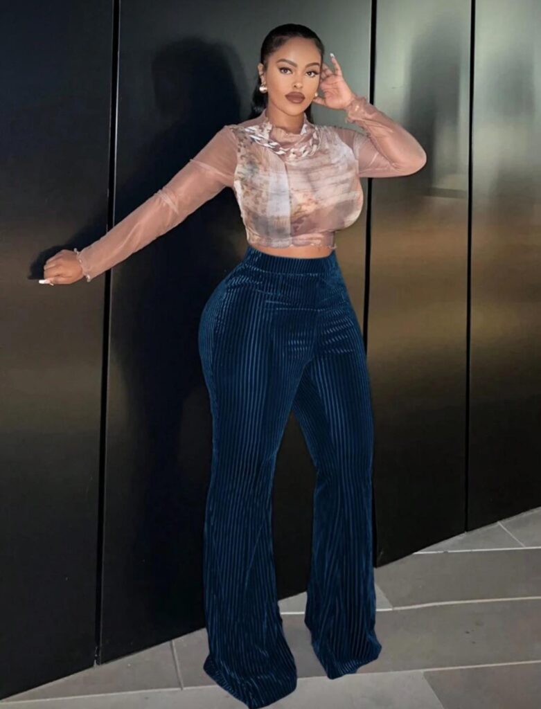 Ceci est un pantalon évasé en velours côtelé bleu sarcelle