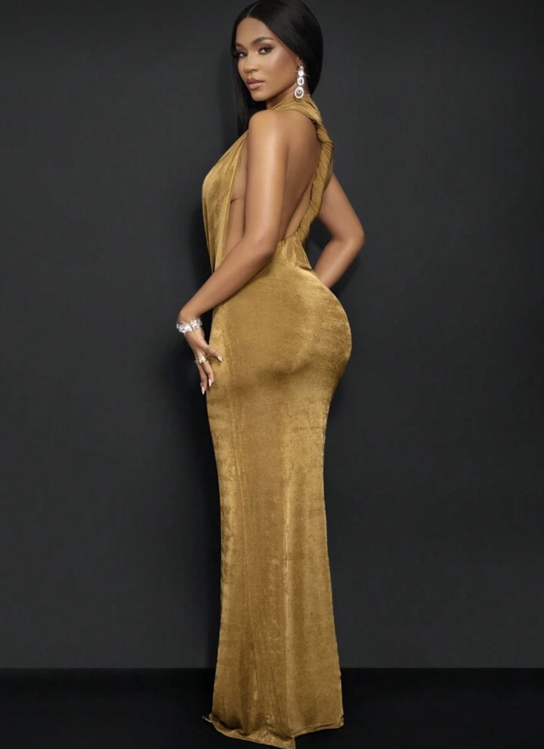 Robe longue corset  à ourlet sirène dos nu et fente haute