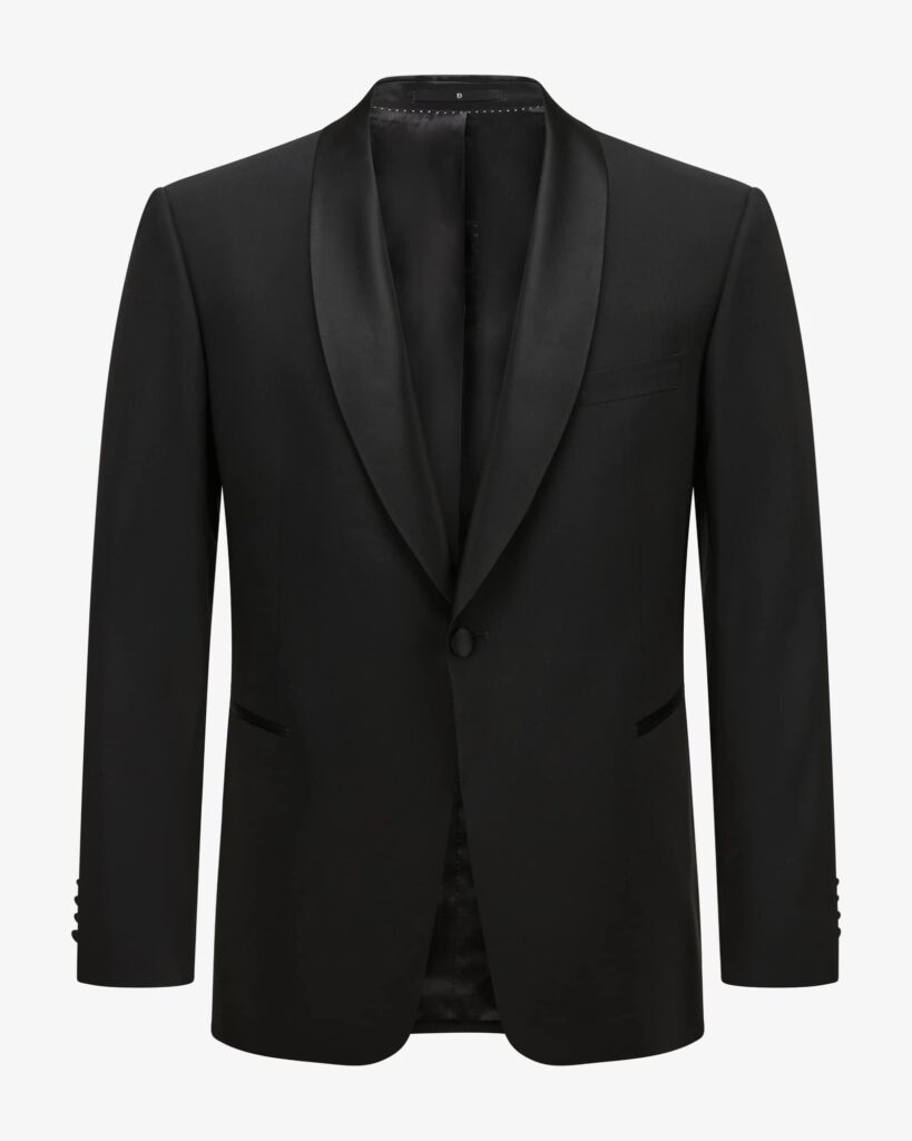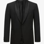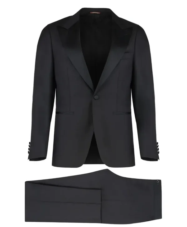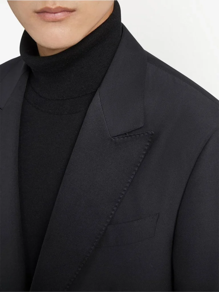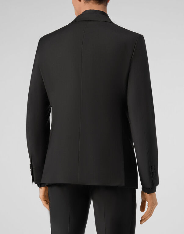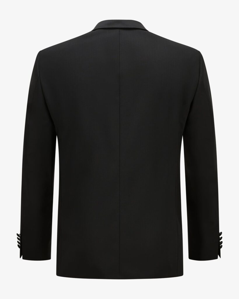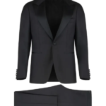 Diabah signe un costume au luxe raffiné, caractérisé par une veste dotée de deux poches à double passepoil sur le deva 55% polyester 45%