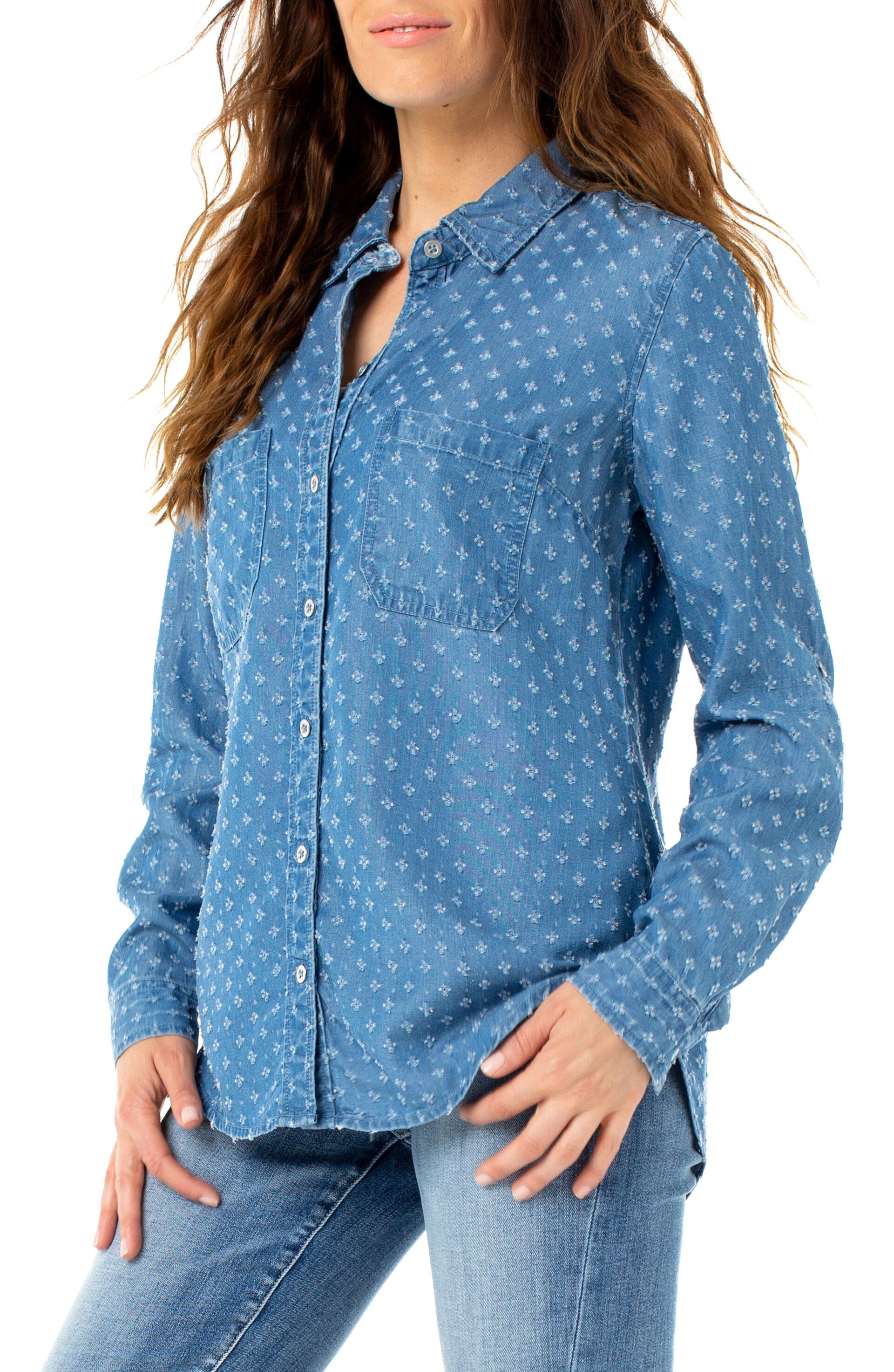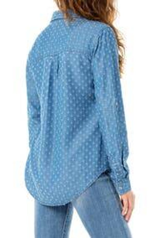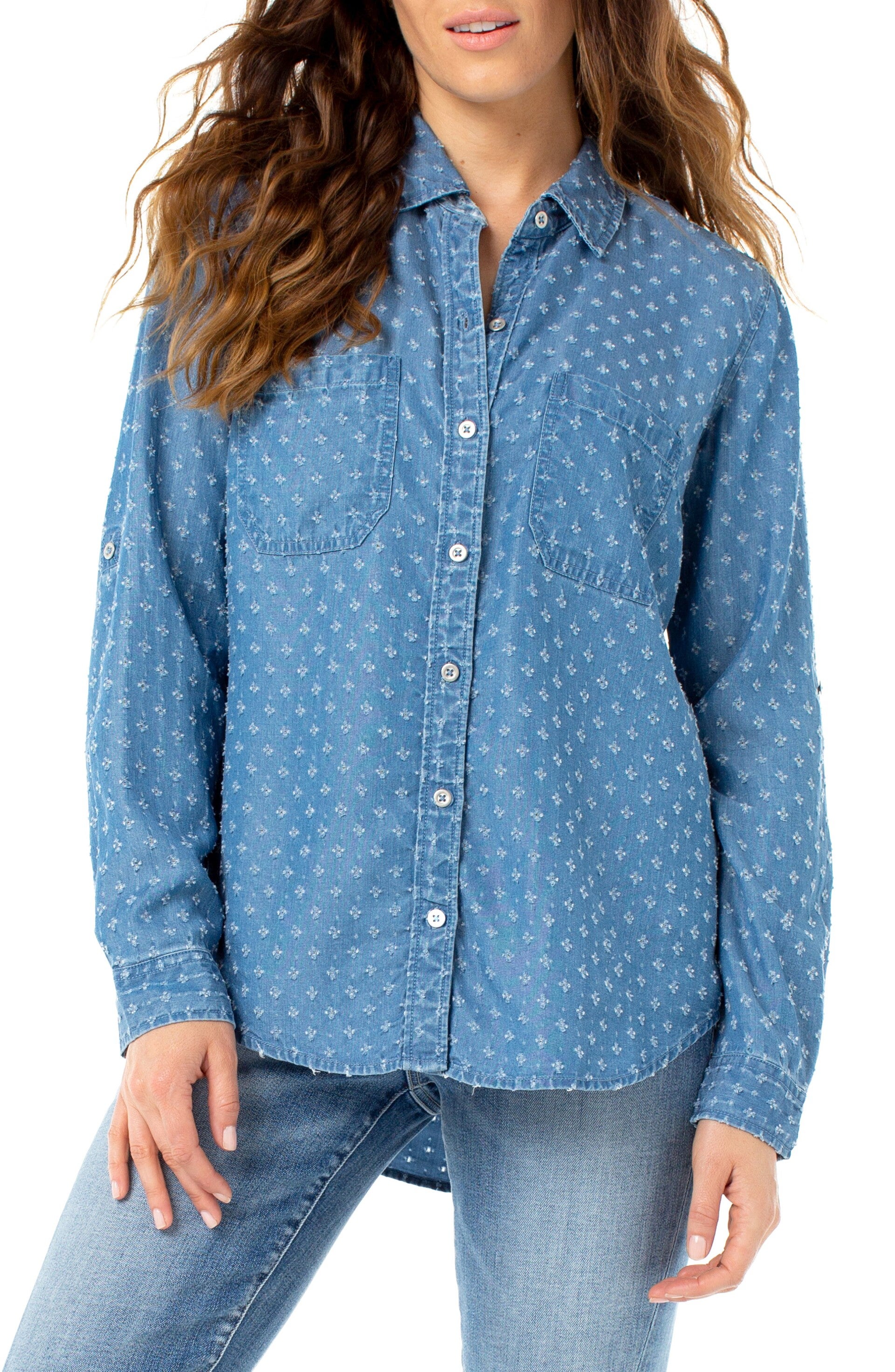 Cette chemise en chambray est confectionnée en lyocell Tencel® durable, adoucie par des boutons texturés et dotée de manches à revers qui restent en place.